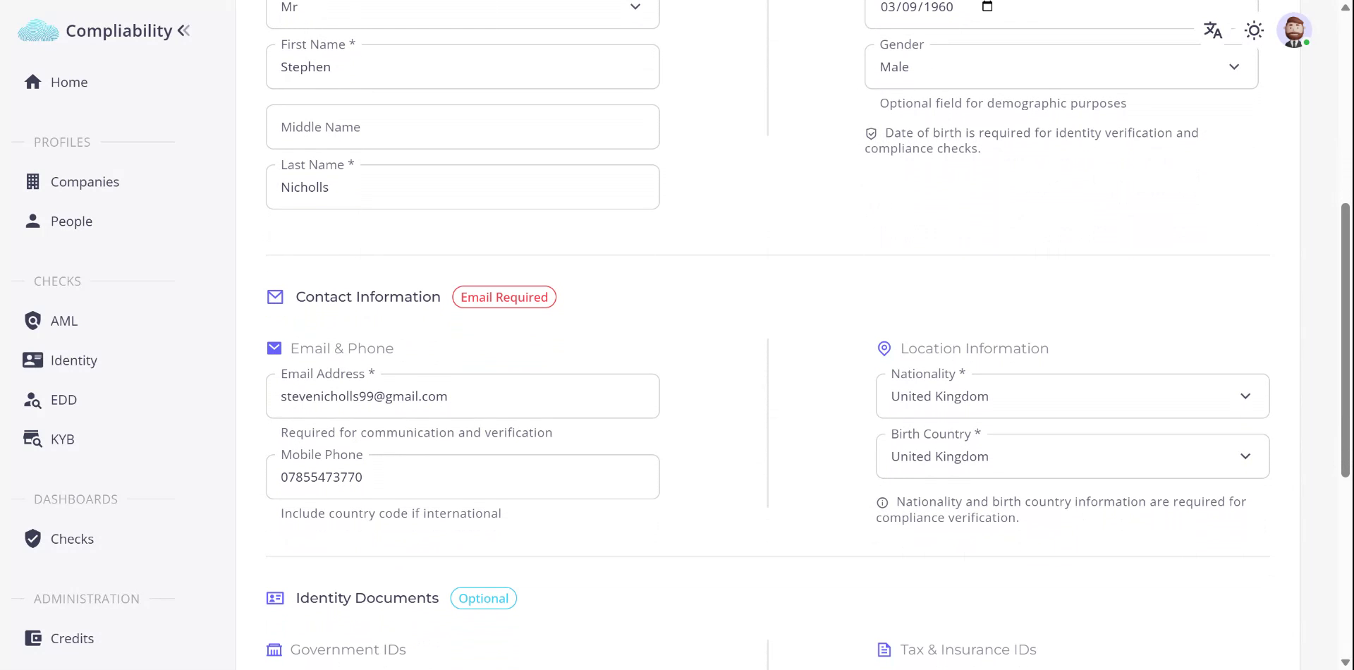 Begin the identity check by accessing the individual’s profile. Upon confirming that no identity checks have been previously conducted, proceed by entering the profile. Initiate the identity verification by selecting the designated button.