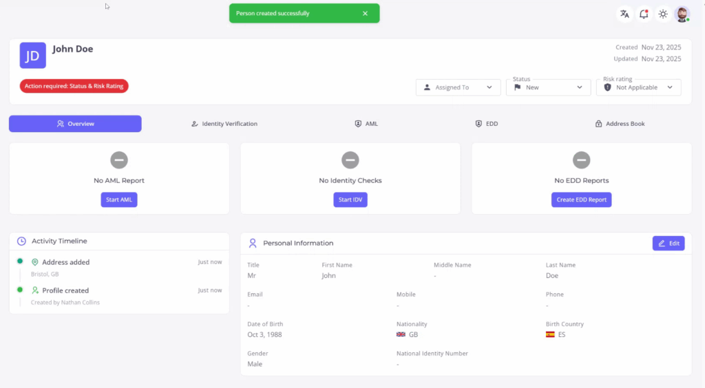 Follow the steps to add a new individual’s basic information and prepare their profile for onboarding.