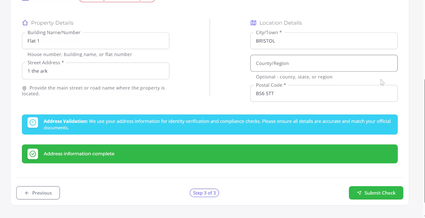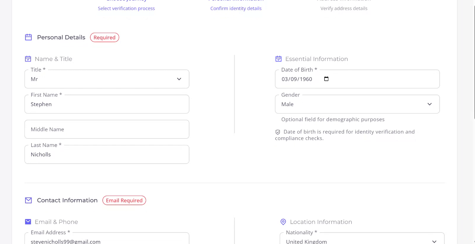 In this instance, select the Right to Rent check option that includes identity verification, as well as a PEPs and sanctions check. Click “Next” to proceed to the personal information page, which is automatically filled with the individual’s known information.